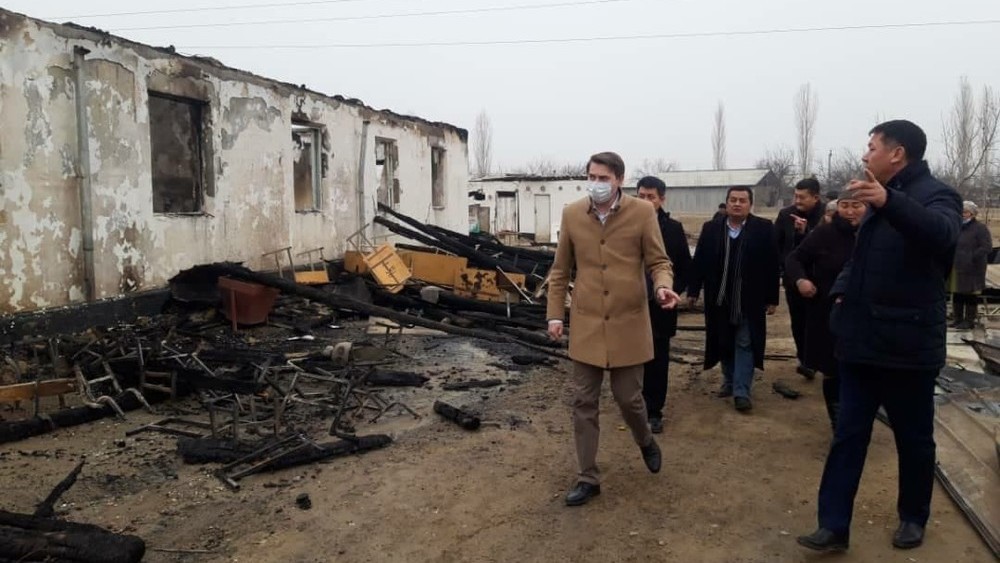 Премьер-министрдин милдетин аткаруучу А.Новиков Баткендеги бүгүн өрттөнгөн мектепке барды